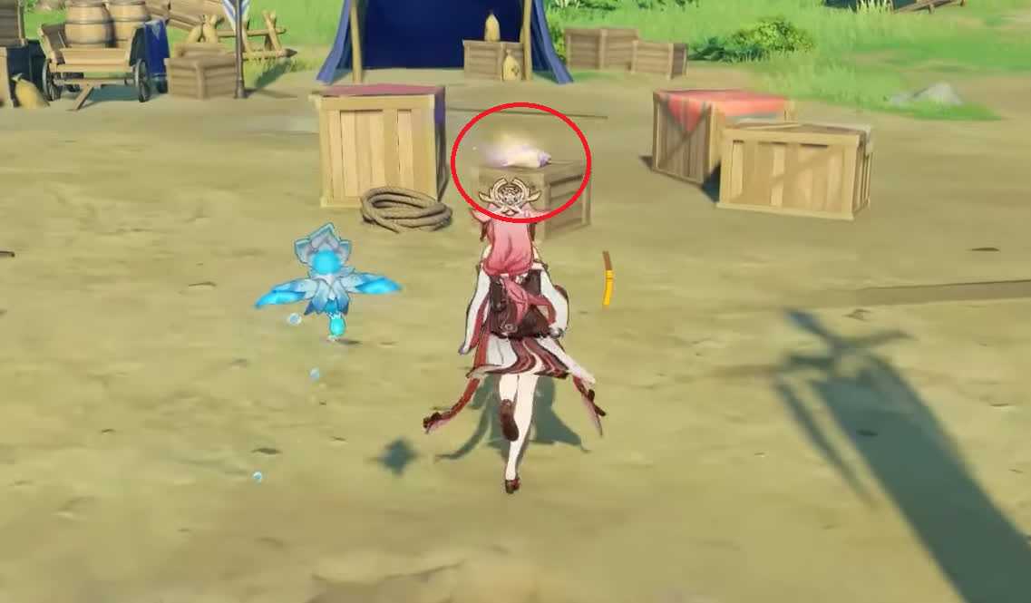 - Уничтожьте три мишени хиличурлов, чтобы появился скрытый богатый сундук.