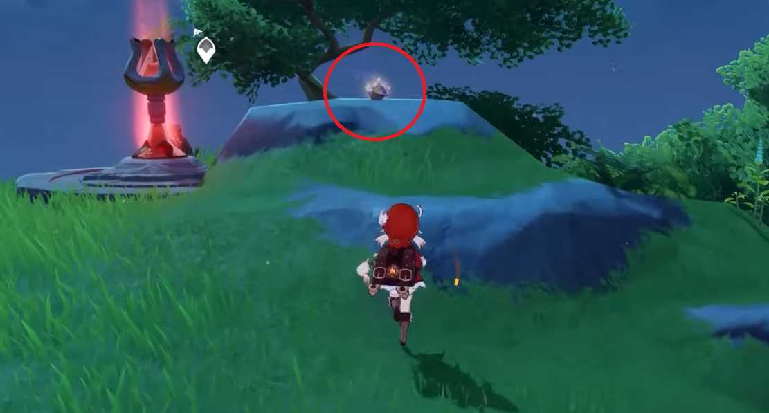 - Активируйте столб пиро элемента с помощью Эмбер, чтобы появился спрятанный богатый сундук. Используйте навыки Кэйя или гео главного героя, чтобы добраться до столба.