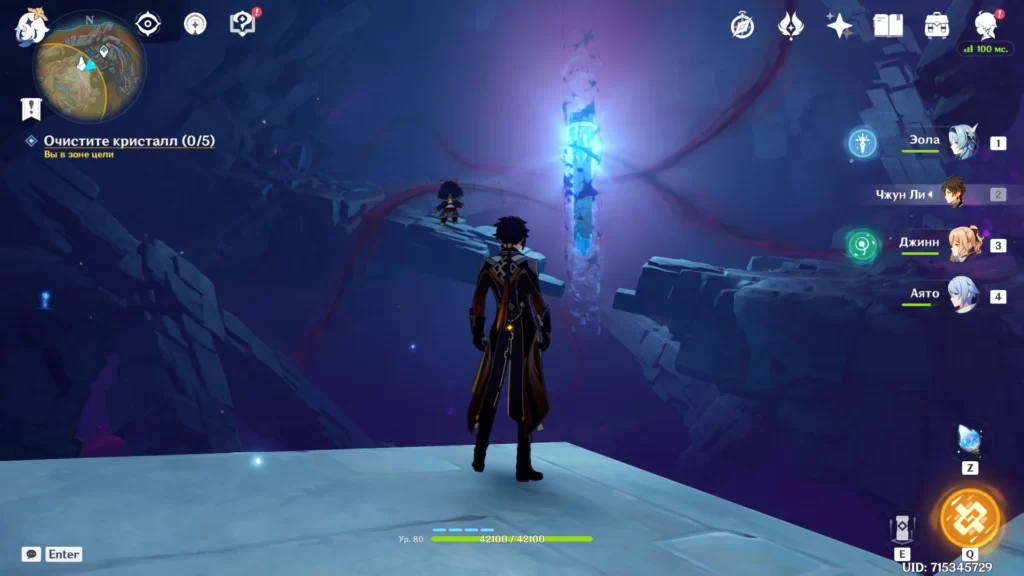 В конце «коридора» будет последняя область, где нужно очистить 5 механизмов. Их местонахождение можно определить по струящимся потокам энергии исходящим от огромного кристалла в центре области.