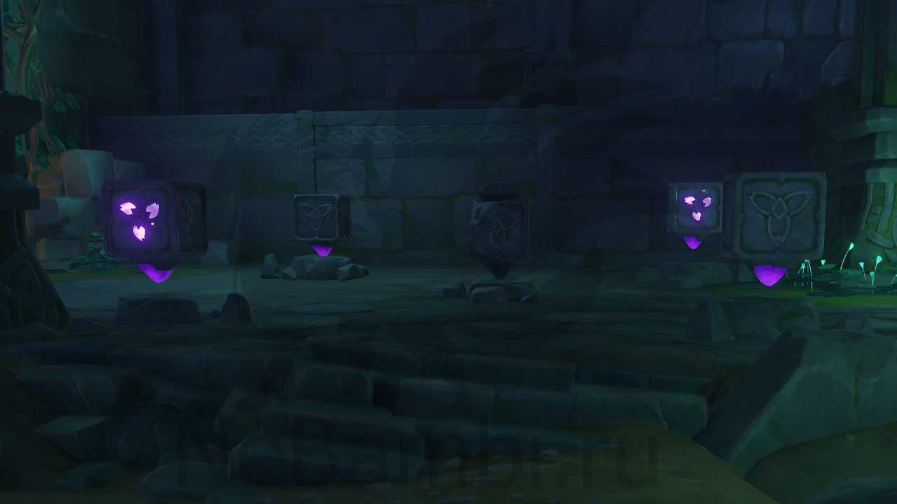 Спустившись в пещеру идем налево от арки с фонарями, там вы найдете пять кубов.