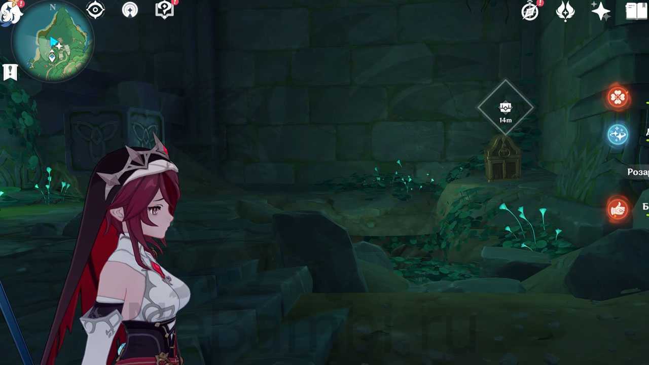 Если вы все сделали правильно, то загадка будет решена и появится сундук. А также опуститься уровень воды в яме возле сундука.