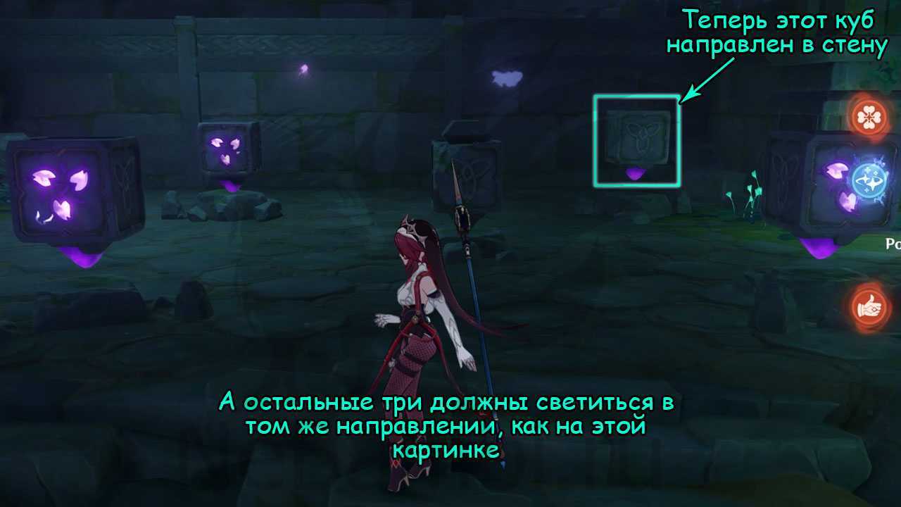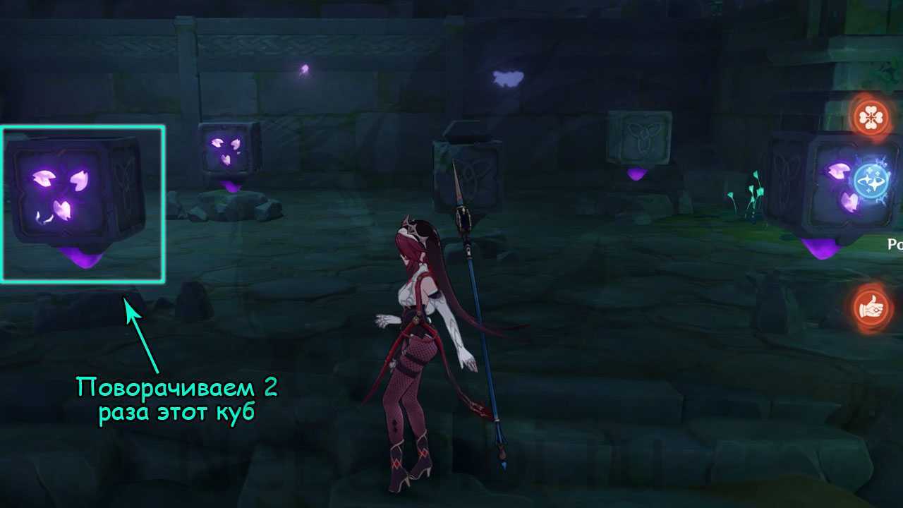 На картинке я показала, какой куб нужно повернуть первым. Поворачиваются они с помощью обычной атаки.