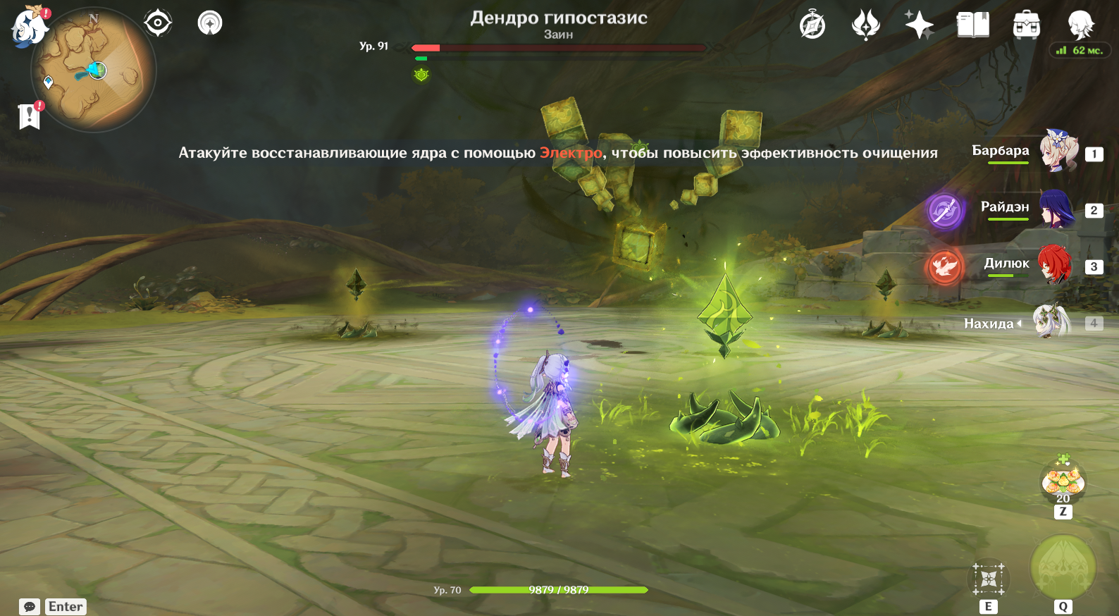Для ускоренного заполнения полосы рекомендуется использовать Электро персонажей. Ими нужно атаковать по ядрам, на которых уже было применено Дендро.