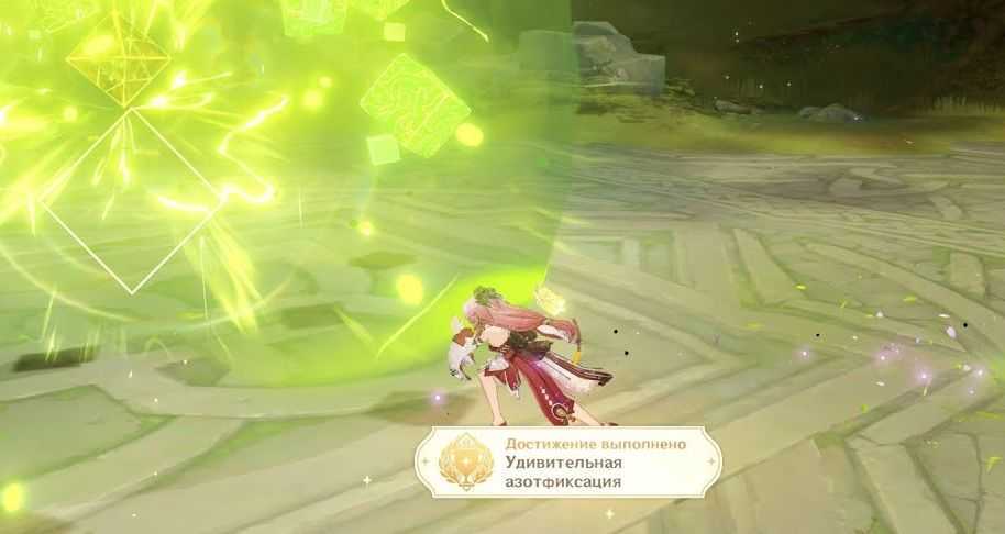 Ачивку «Удивительная азотфиксация» можно получить, если перевести все ядра восстановления в состояние оживления одновременно. Для этого вам потребуется два дендро персонажа и два электро героя (либо один с возможность активировать электро без отката, например, Яэ Мико или Куки Синобу).
