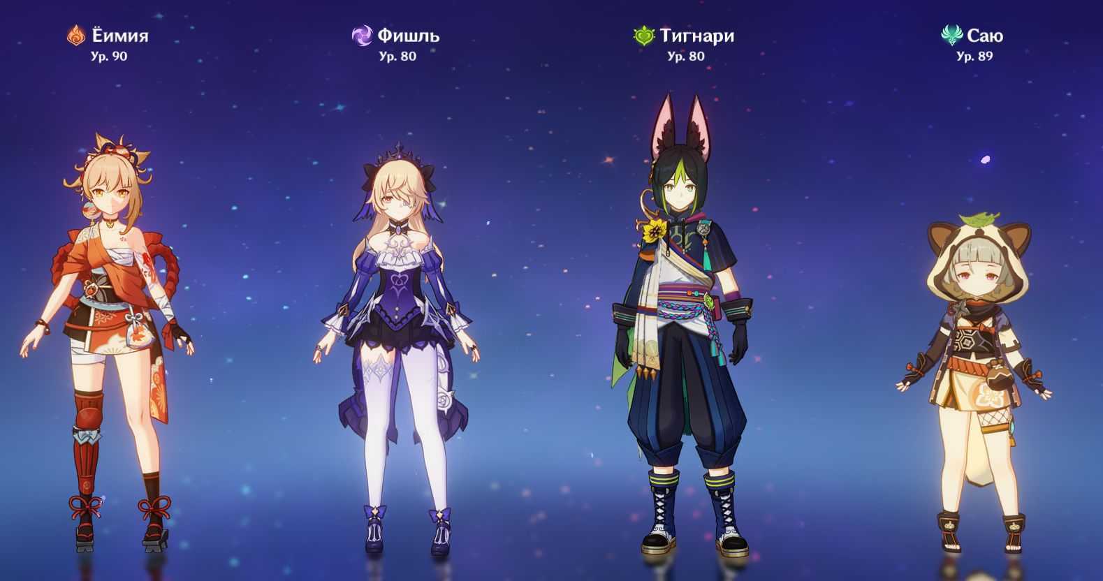 - Электро. Как главный ДД в пачку отлично встанут Кэ Цин, Сайно или Райдэн. В качестве поддержки можно взять Яэ Мико, Фишль или Синобу, которые хорошо генерируют электро-статус;