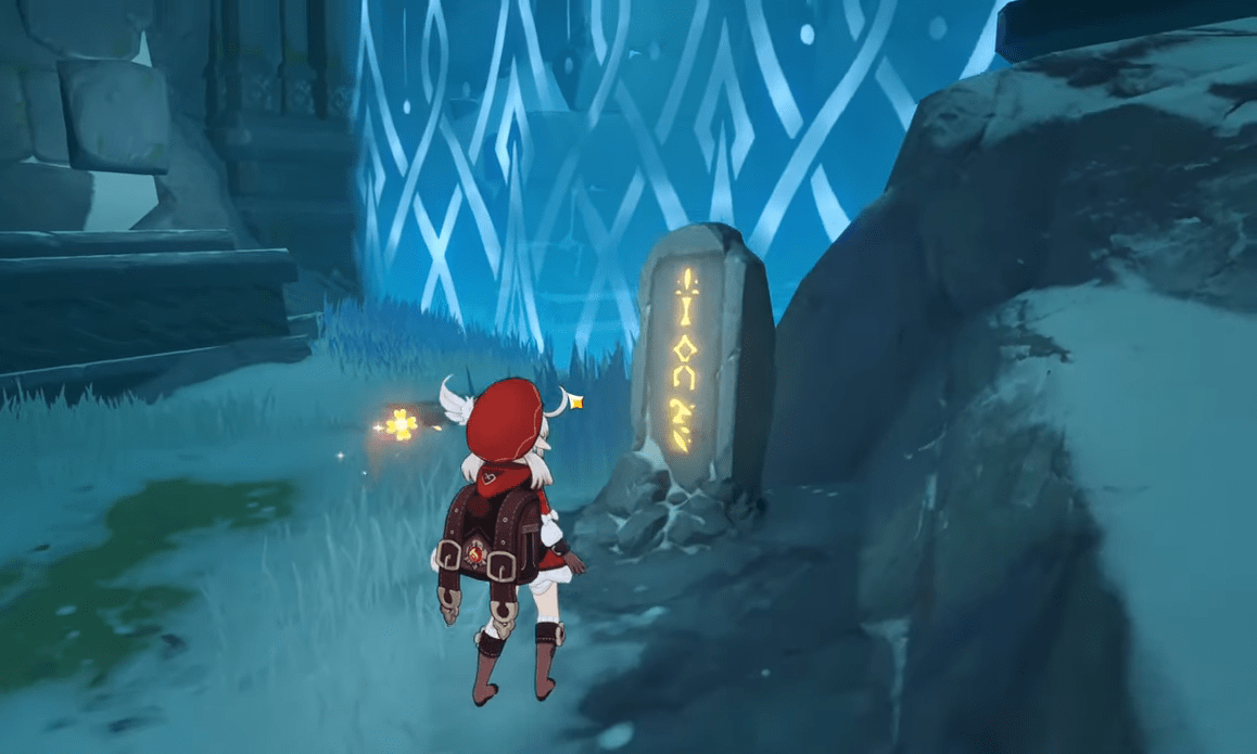Нажмите на камень и активируйте фею. Следите за тем как она летает, она подскажет вам правильный порядок активации крио колонн. Появится сундук в котором тоже будет Багровый агат. Самое сложное, что после этого вам придётся сразиться с тремя стражами, так что будьте готовы.