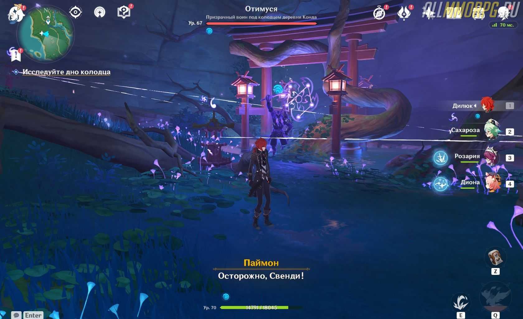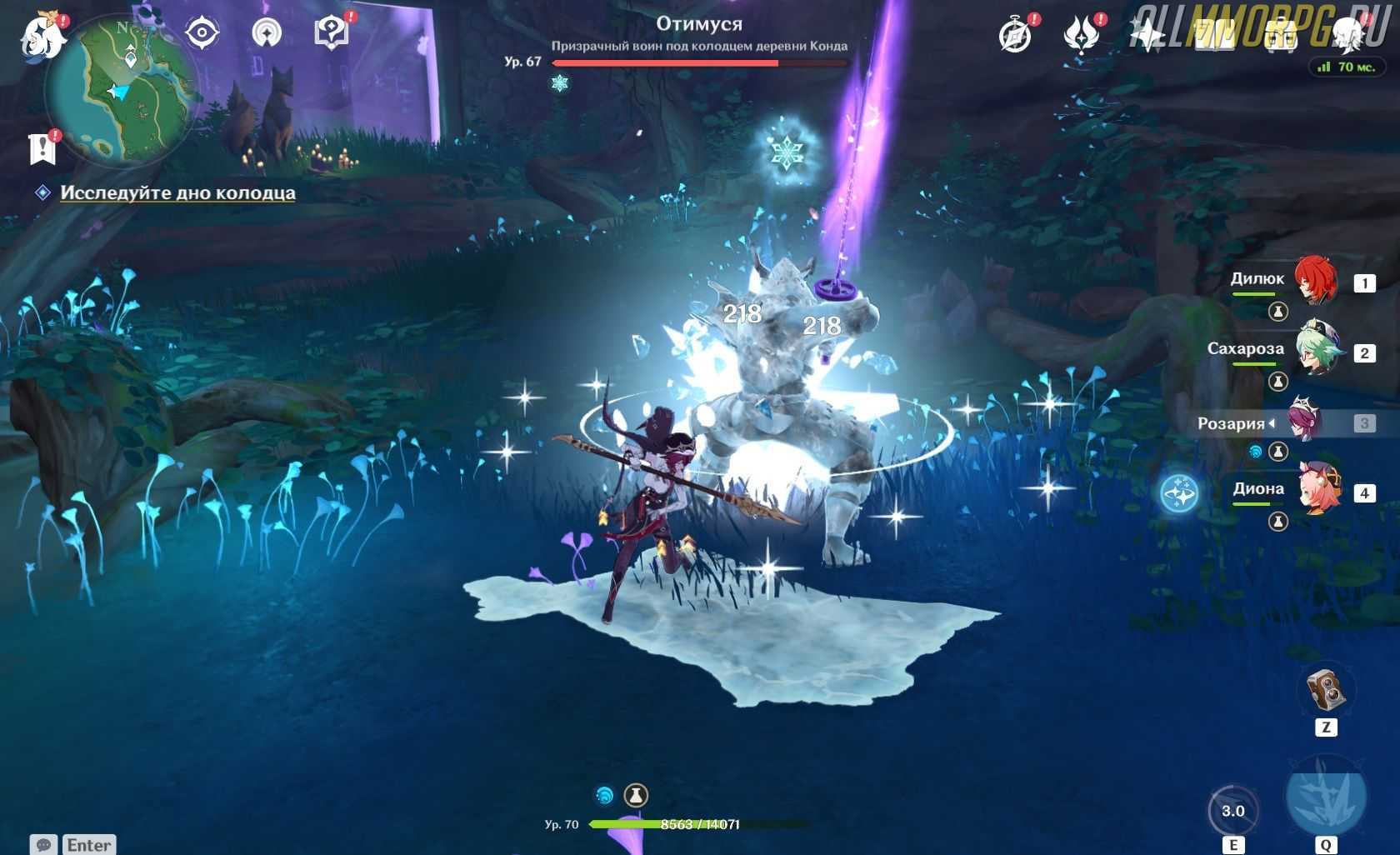 Если у вас возникли трудности с убийством Отимуся, то используйте героев с крио-стихией. В этой комнате много воды, поэтому вы сможете все время держать его в заморозке. Это самый простой способ победить противника.