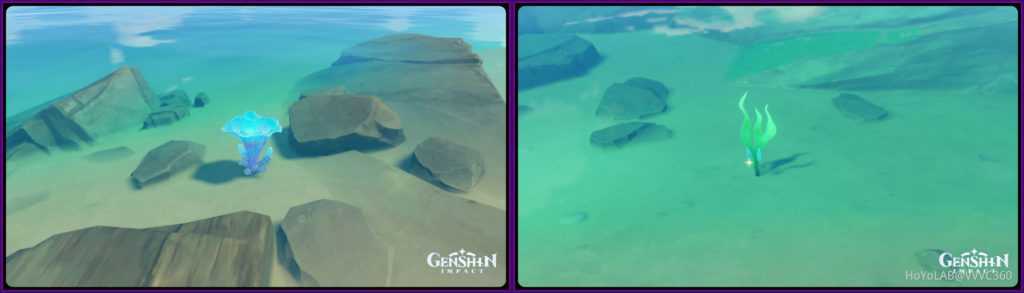 Морской гриб и Морская водоросль – растения, которые можно встретить только под водой. Находятся на побережьях всех островов Инадзуми, морских грибов больше всего вокруг островов Каннадзука.