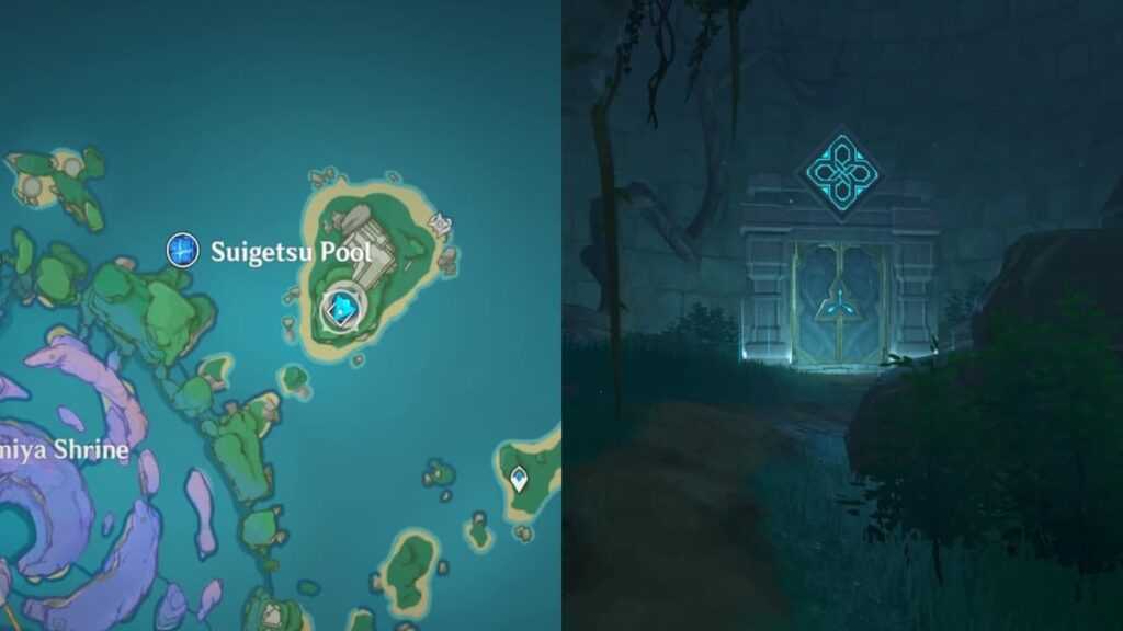 Подземелье Дом у пруда: как открыть и пройти — это одноразовое подземелье на острове Ватацуми, вход в него скрыт под водой, которая убирается в ходе прохождения головоломки. За открытия подземелья получим достижение «Дом у пруда».