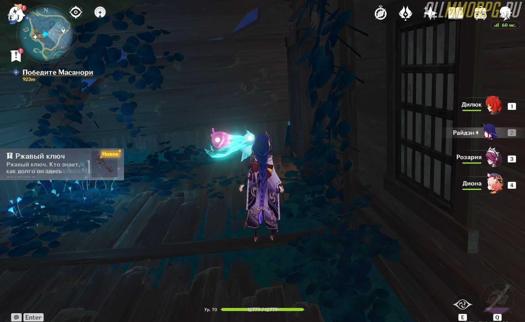 Осмотрев улики, отправляйтесь на крышу, чтобы взять дневник босса. Прочитав его, перейдите в область карты. Паймон сразу увидит, что самурай что-то ищет. После победы над ними выкопайте старый ключ.
