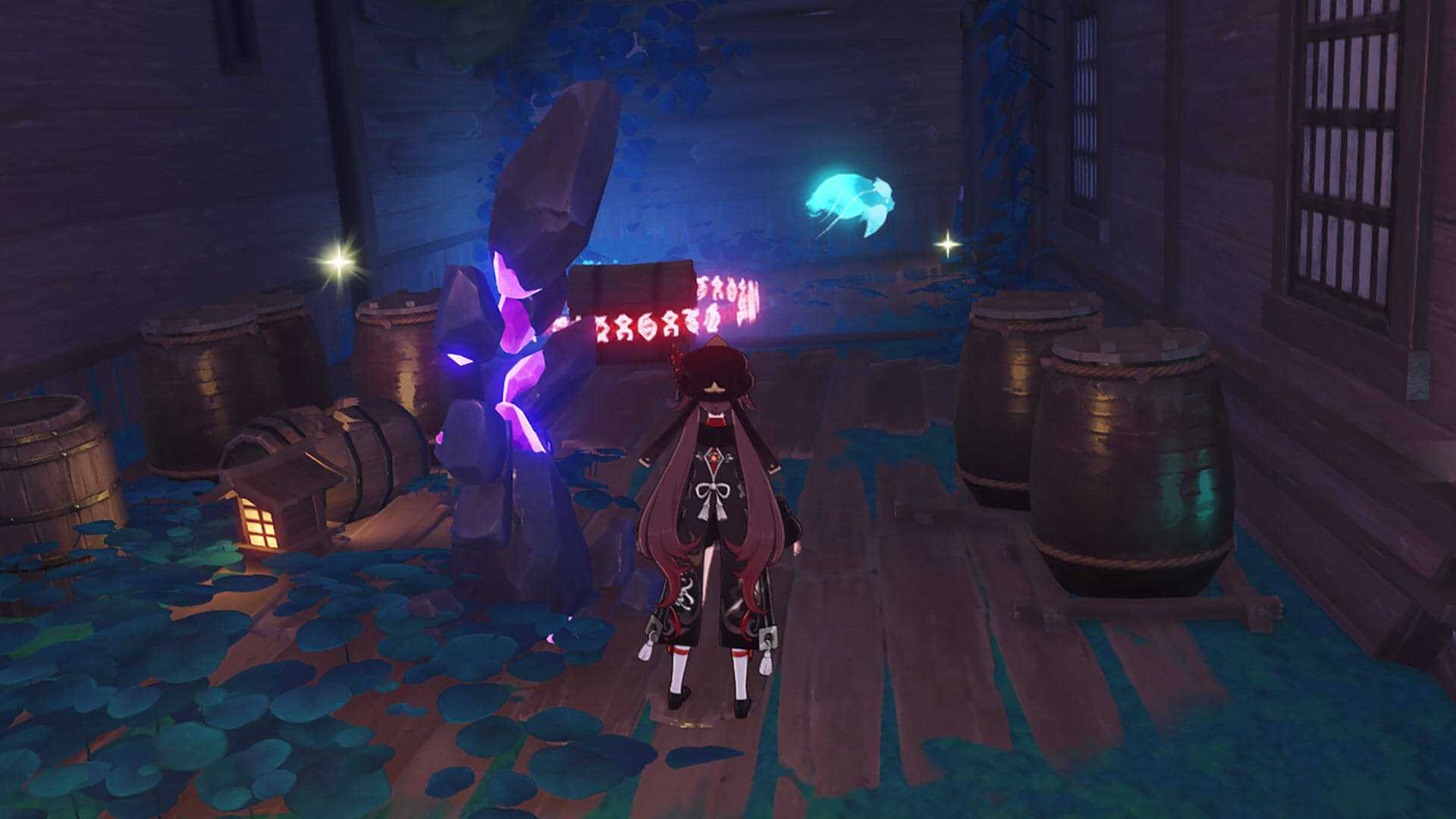 Войдя в пещеру, есть смысл очистить ее от самураев и Фатуи, которые будут мешать. Затем нужно собрать релейные камни. Два из них скрыты Электро-барьерами по разные стороны пещеры.