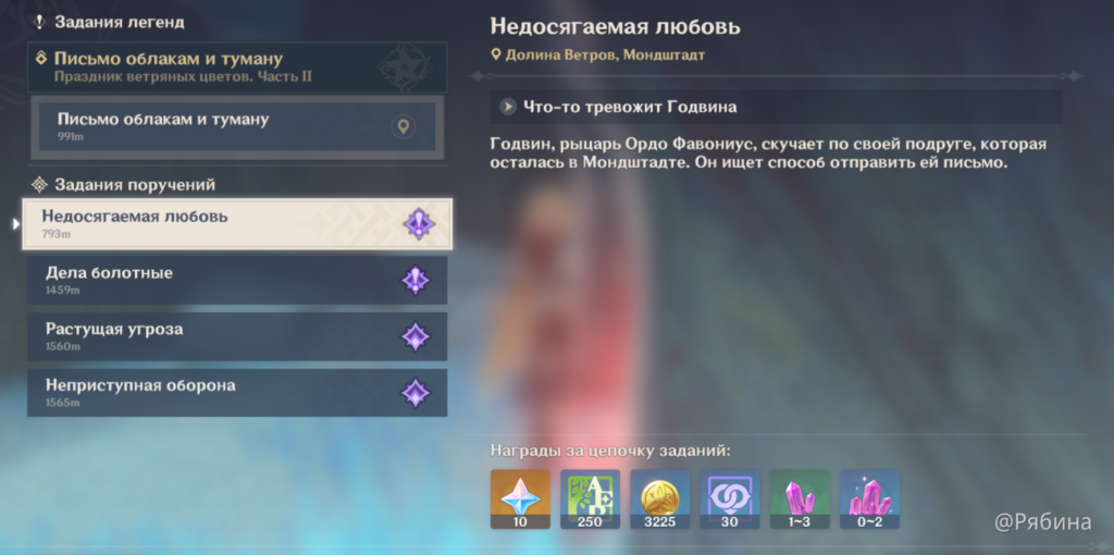 Поручения – это несложные ежедневные задания. Обычно их суть сводится к решению простых головоломок, убийству нескольких монстров или разрушению каких-либо объектов в лагере противника. Выполнив все 4 ежедневных поручения, вы получите опыт приключений, Камни Истока и многое другое.