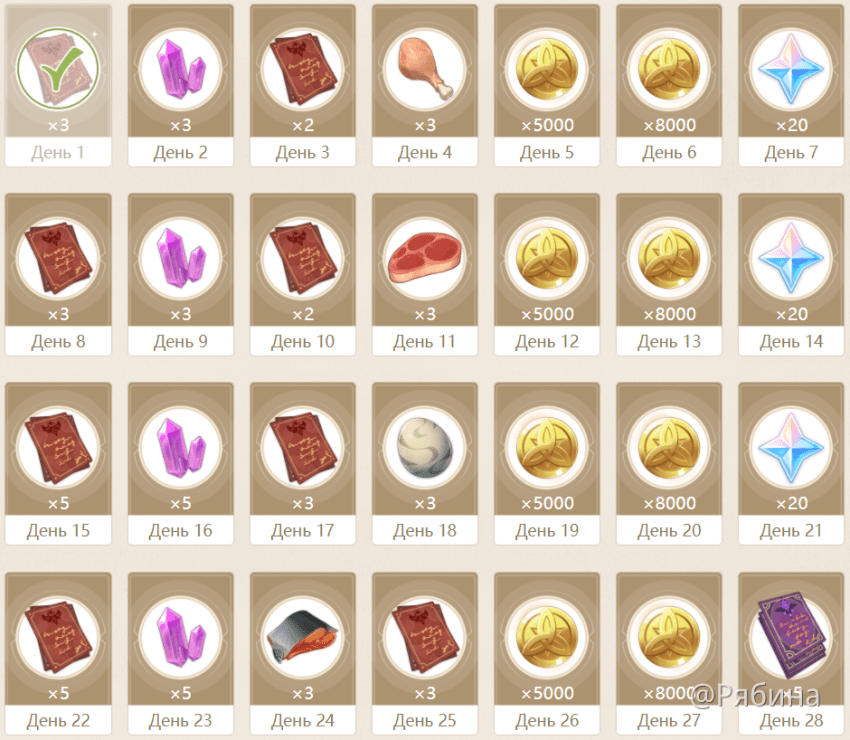 Время от времени в самой игре тоже появляется возможность отмечаться каждый день, чтобы получать награды. Это временное событие, в отличие от отметок на сайте, зато количество Камней Истока гораздо выше!