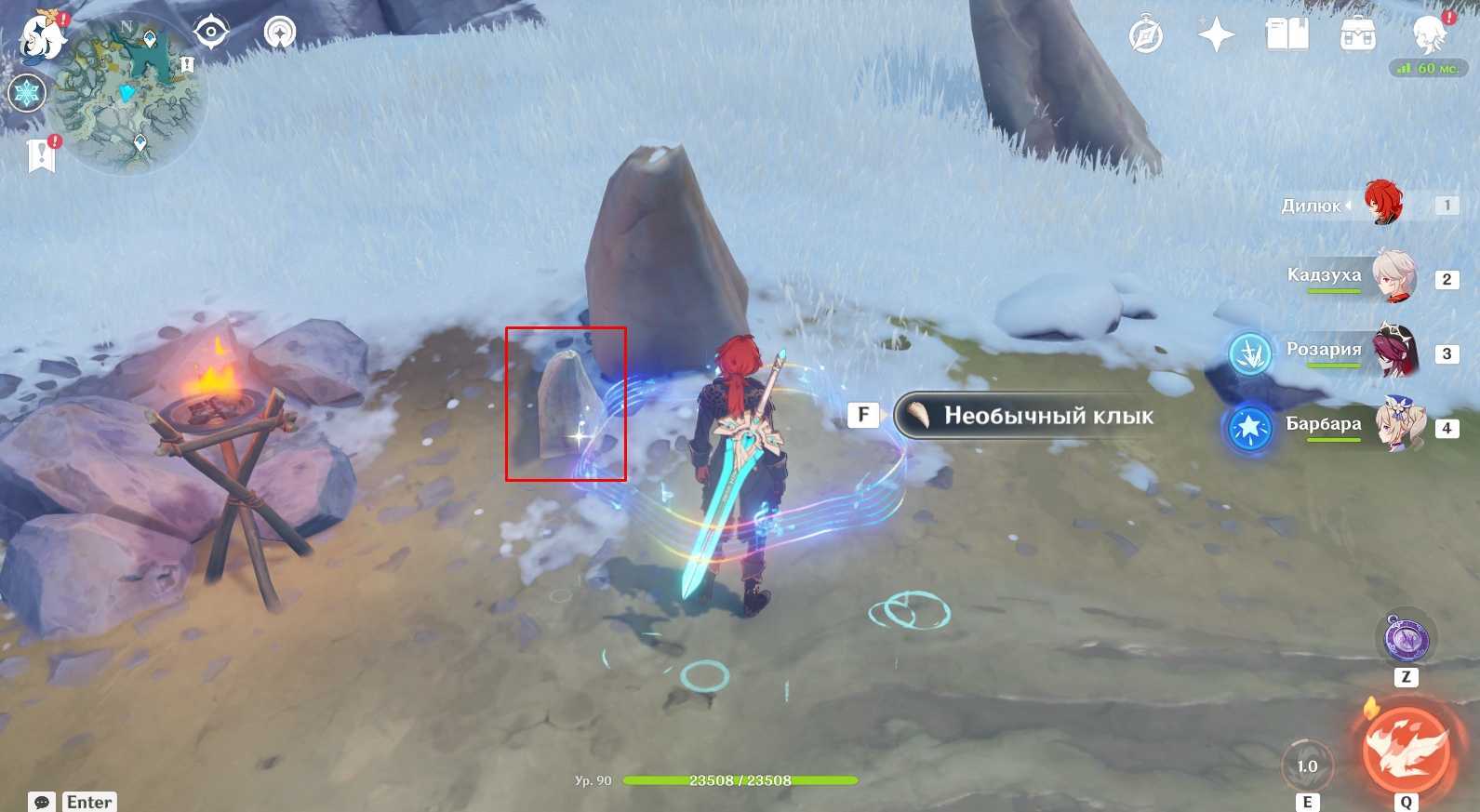 - Третий Необычный клык можно найти в лагере Фатуи за большим клыком. Там вас встретит солдат: можно с ним сразиться, а можно оставить, сбежав через телепорт.