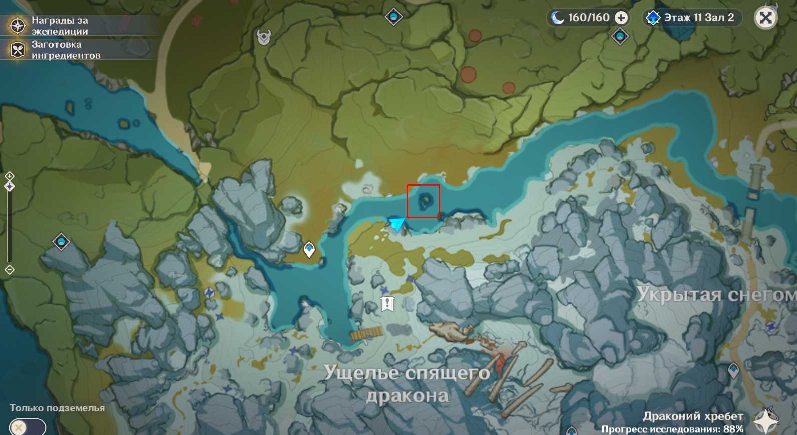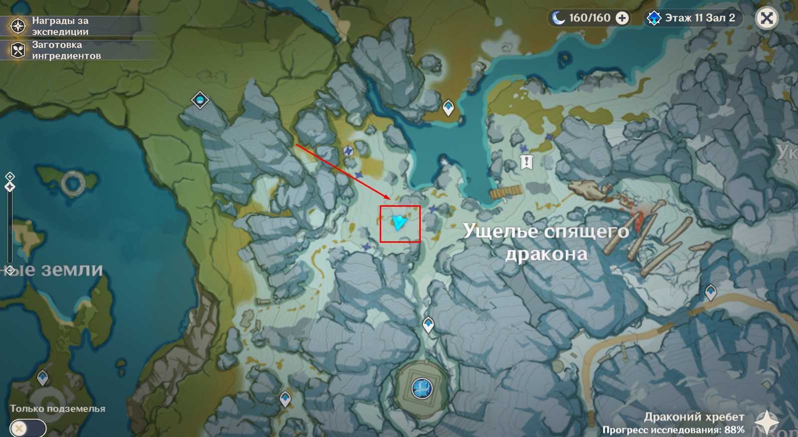 Первый находится в правом верхнем углу региона, на небольшом острове к югу от Спрингвейла (смотрите первые два скриншота). Он может быть спрятан внутри ледяного кристалла, а потому вам предстоит для начала взять алый кварц, который находится в точке, показанной на скриншотах ниже.