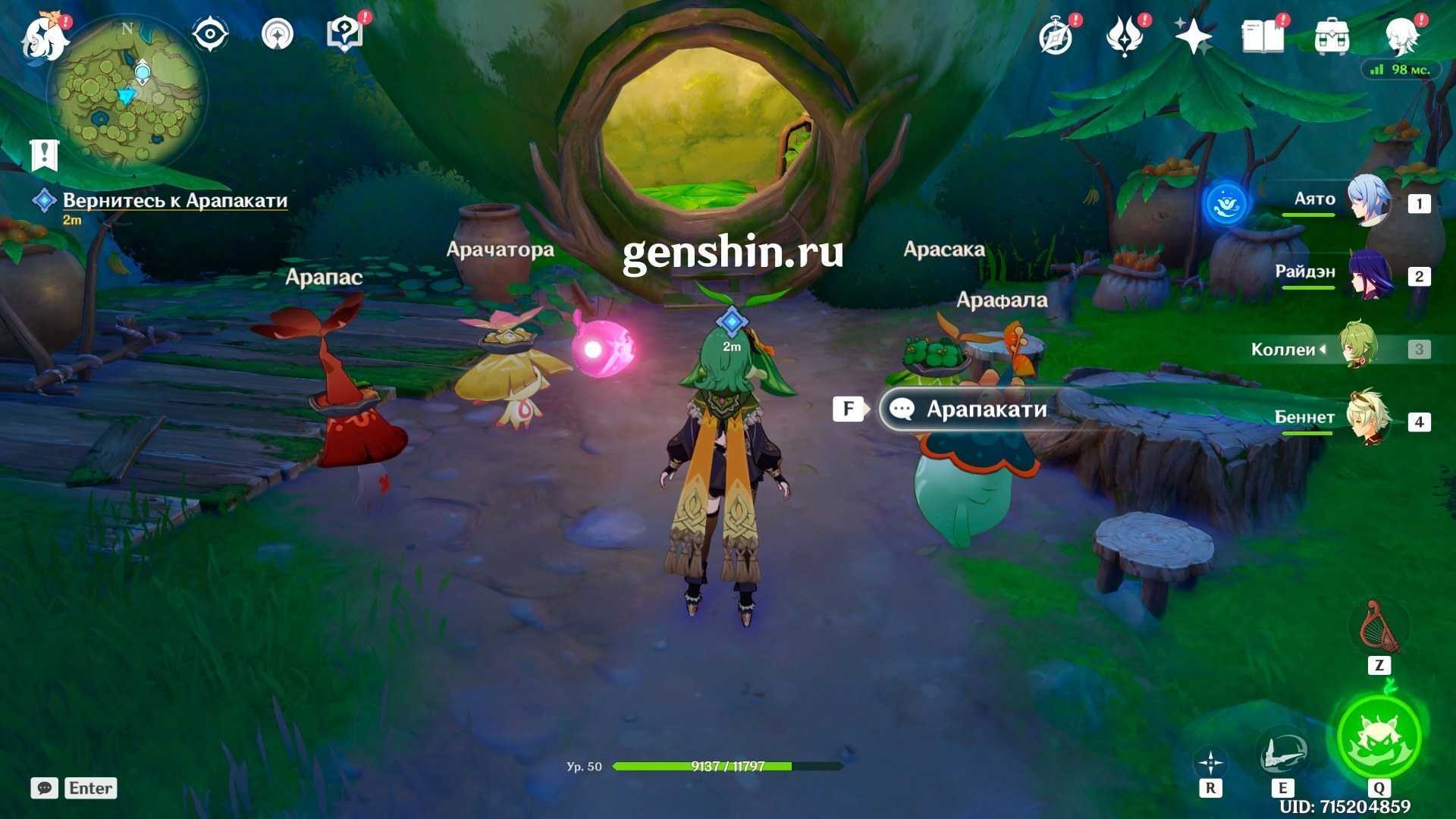 - Прибегните к Дендро, чтобы помочь аранаре прийти в себя.