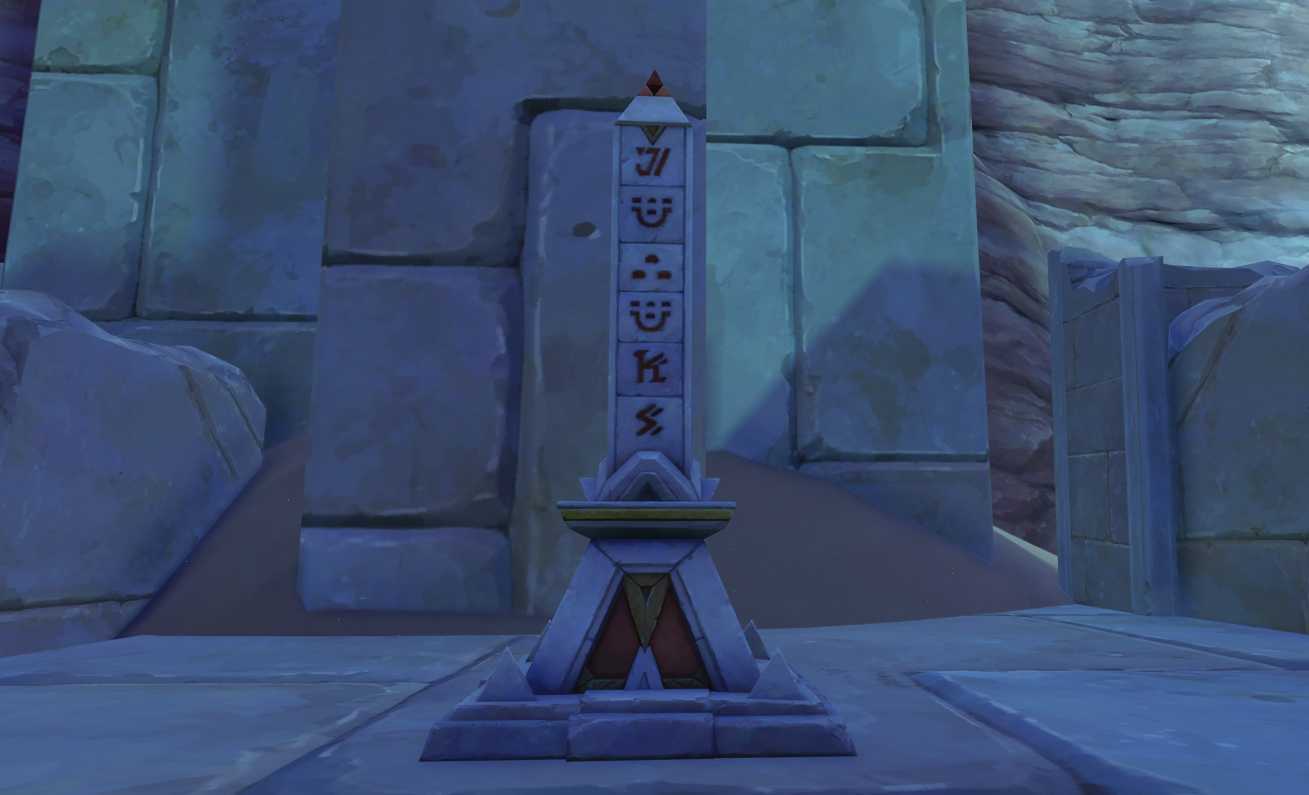 Обелиск в на входе в зал Дуат при прохождении задания «Древний язык, новые знания: Двойное доказательство».