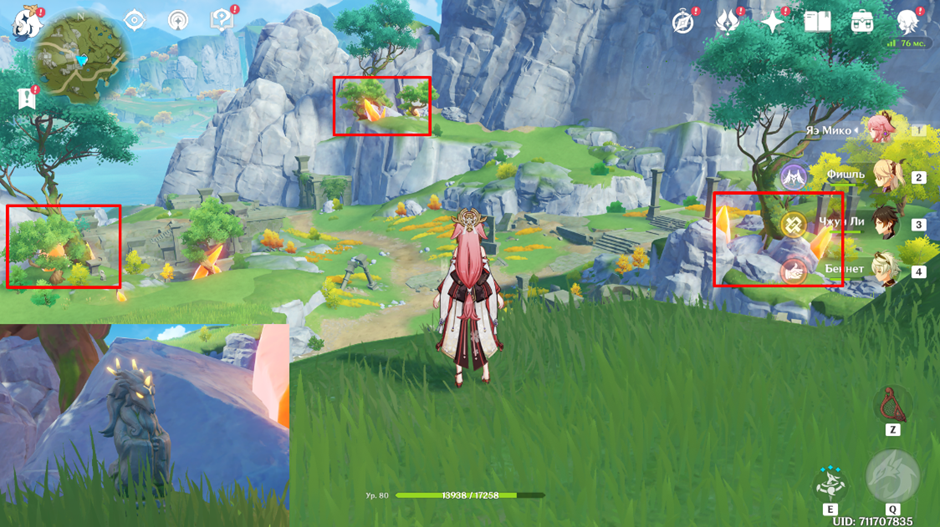 Далее игрок соберет сведения о фрагментах у неигровых персонажей в Цинцэ – Малышки Ло, Мастера Лу или, например, Маленького Цзо. В конце концов НИПы отправят Путешественника к старейшине Жо Синь. Бабуля посоветует искать оставшиеся фрагменты на большой высоте и в руинах на западе деревни.