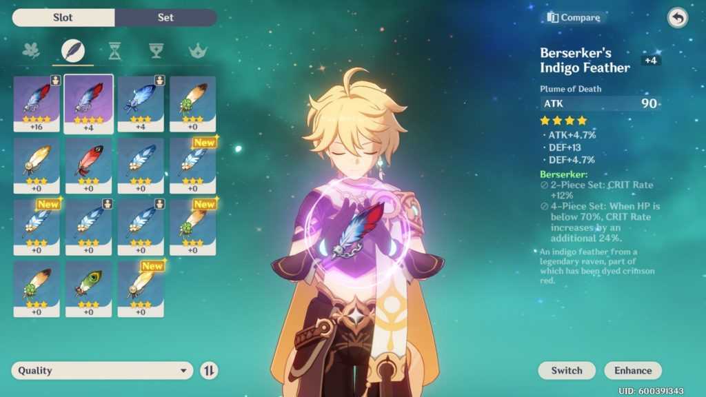 Возьмём в качестве примера “Перо берсерка” (4 звезды):