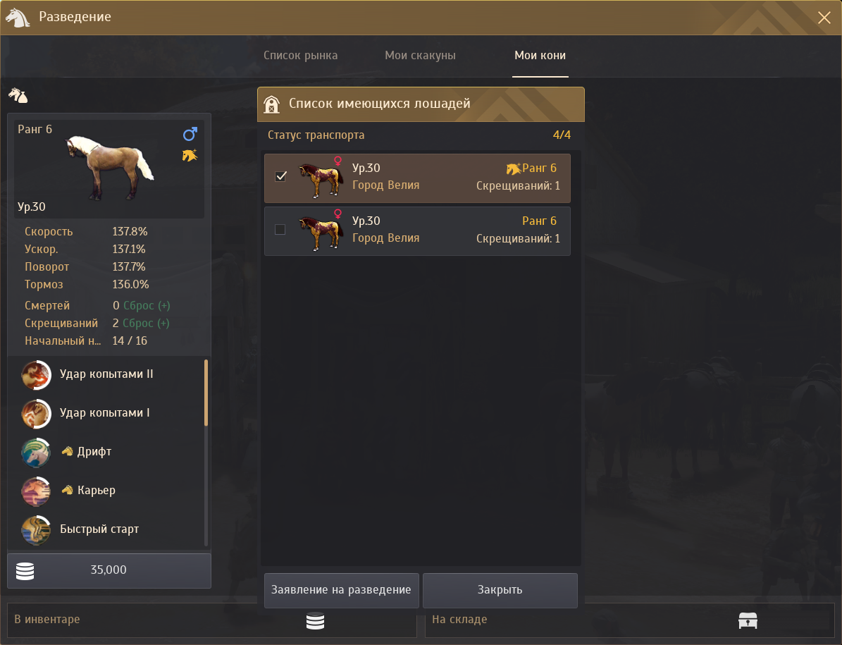 Тогда в списке рынка будут показываться только ваши лошади. Выберите нужных и подайте заявку на разведение.
