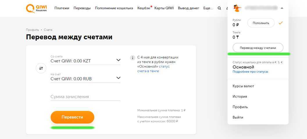 Начать стоит с регистрации нового кошелька на официальном сайте Qiwi с помощью номера мобильного телефона. После подготовленный счет предстоит пополнить (наиболее выгодный вариант – с помощью системы быстрых платежей) и подготовить к работе со сторонними валютами. Речь об уже названных раннее тенге, добавляемых в профиль через раздел «Управление счетами».