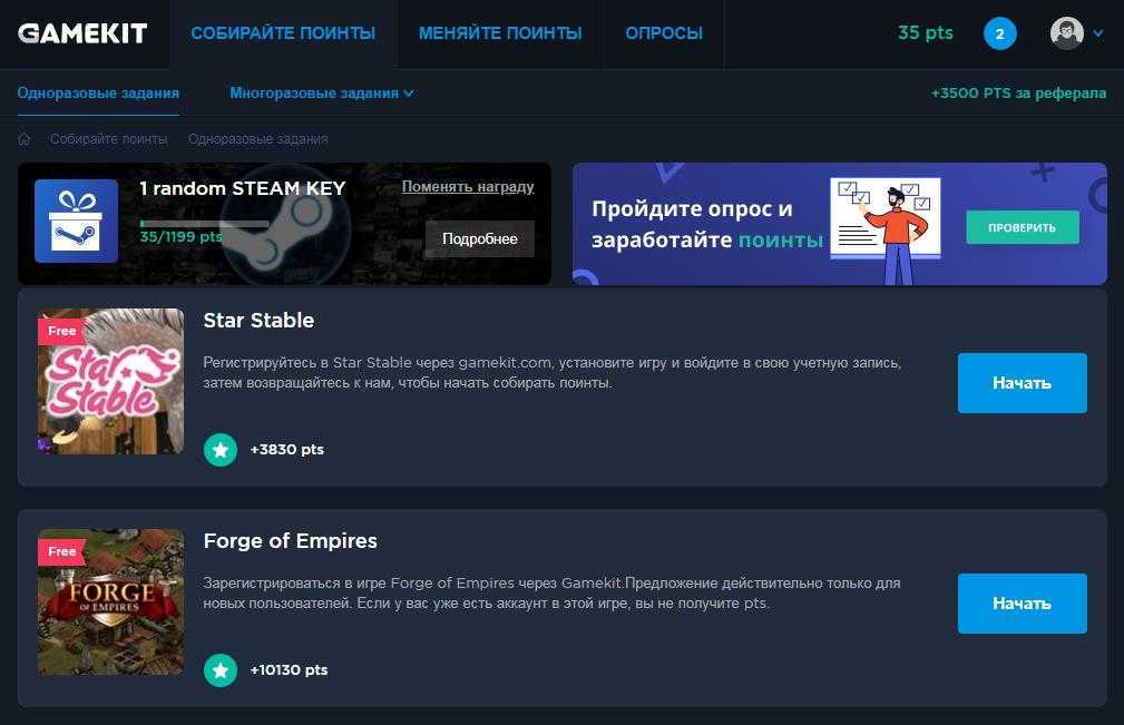 Ещё один зарубежный сервис без русского языка, где за регистрацию предусмотрен бонус. На сайте есть своя валюта – points, она эквивалентна робуксам. Зарабатывать её можно также через задания (offers) или с мобильного приложения. По сути ничем не отличается от предыдущего проекта, только заказов тут всегда больше:
