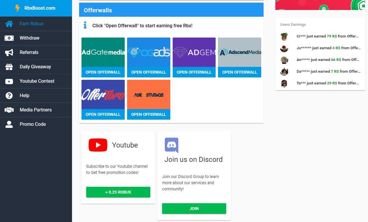 Создан именно для заработка Робуксов и уже выплатил свыше 1.3 миллионов R$. Регистрация простая, баланс ведется в Robux. Здесь задания выполняются через сервисы партнеров. Русского языка нет, но разобраться в интерфейсе и условиях заказов не сложно. Это могут быть просмотры видео, клики, регистрации, установка приложений: