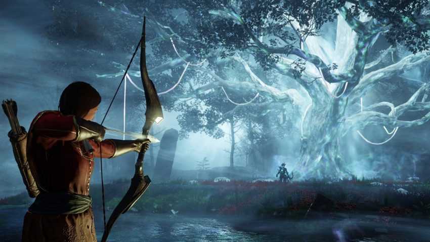 Лук — очень популярное оружие, очень мощное оружие дальнего боя. Оружие масштабируется от Ловкости и включает в себя деревья навыков застрельщика и охотника. Заклинания, наносящие постепенный урон, и вспомогательные навыки, такие как Poison Shot и Battle Precision, более распространены в дереве Skirmisher. Тем не менее, дерево охотников более жизнеспособно, поскольку оно обеспечивает лучший урон в секунду и постоянный урон.