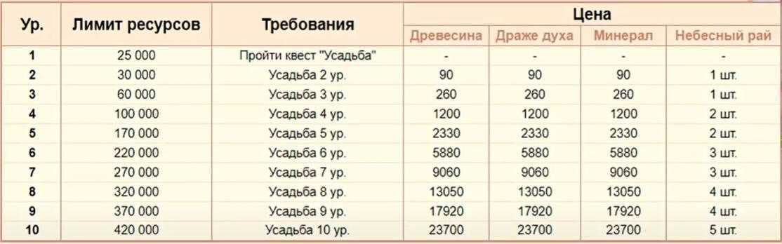 «Склад». За счёт него происходи регулировка лимита ресурсов усадьбы.
