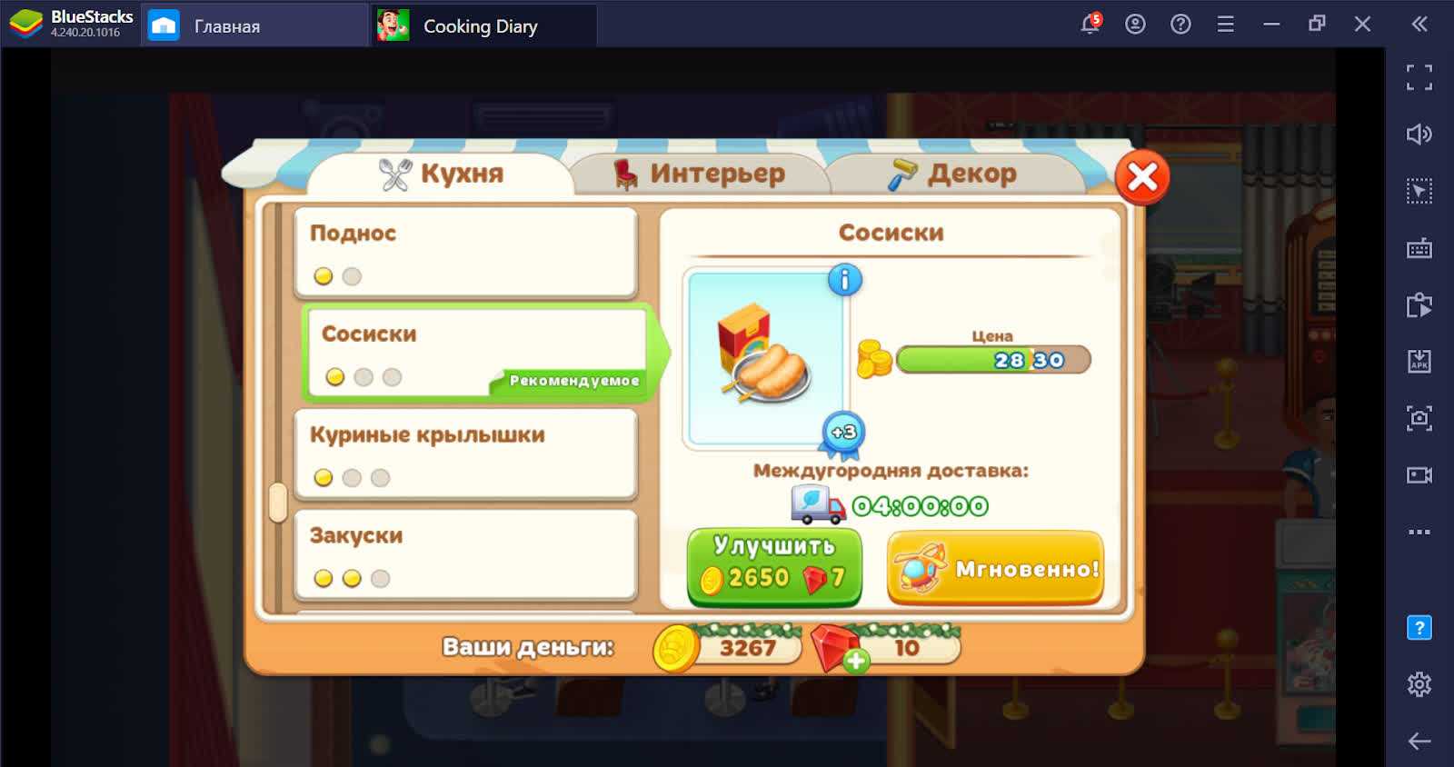 Чтобы получить больше монет, надо сначала отдать их в достаточном количестве. Звучит, как первая заповедь инвестирования. Чтобы увеличить свою прибыль с каждого уровня, надо разблокировать лучшие продукты. Стейк из мраморной говядины стоит дороже, чем из мяса обычной буренки, поэтому использование качественных ингредиентов позволит вам зарабатывать больше денег за заказ.