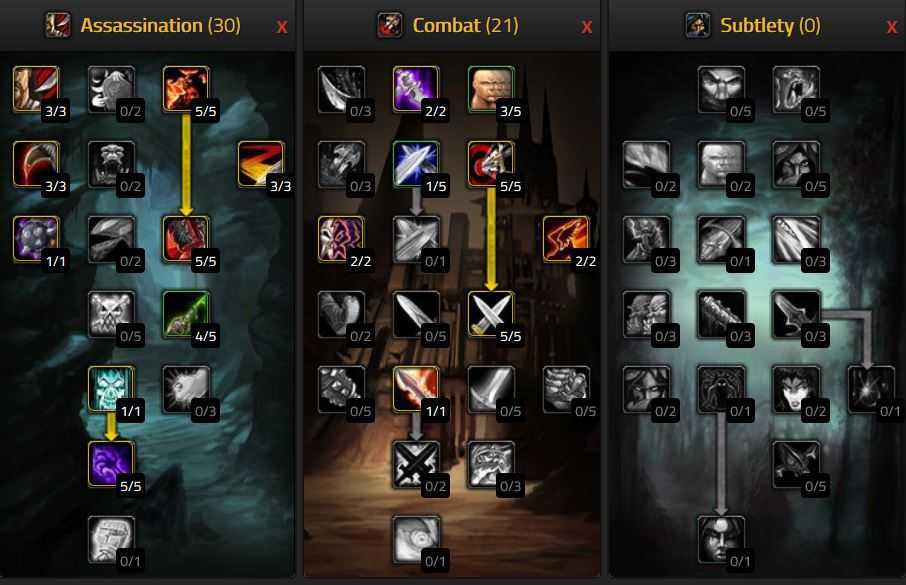 If you want to use swords, you’ll actually free up 8 whole talent points as you won’t ever use Backstab to benefit from Improved Backstab or Opportunity. This allows you to put a full 5 points in Dual Wield Specialization, while also picking up the important Blade Flurry cooldown. Blade Flurry boosts your attack speed by 20% for 15 seconds, while also making all abilities cleave. This is absolutely lethal in combination with orc or troll racial abilities.
