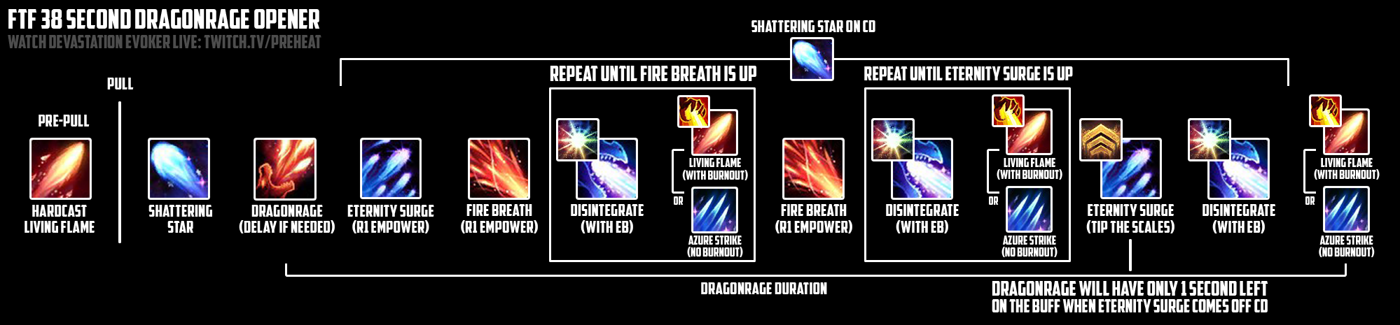 При взятии таланта Поддержание огня можно использовать альтернативный опенер. Всплеск вечности в таком случае используется в качестве первой заряжаемой способности, а Смещение равновесия придерживается под конец Ярости дракона для мгновенного применения второго Всплеска вечности, продлевающего Ярость дракона.