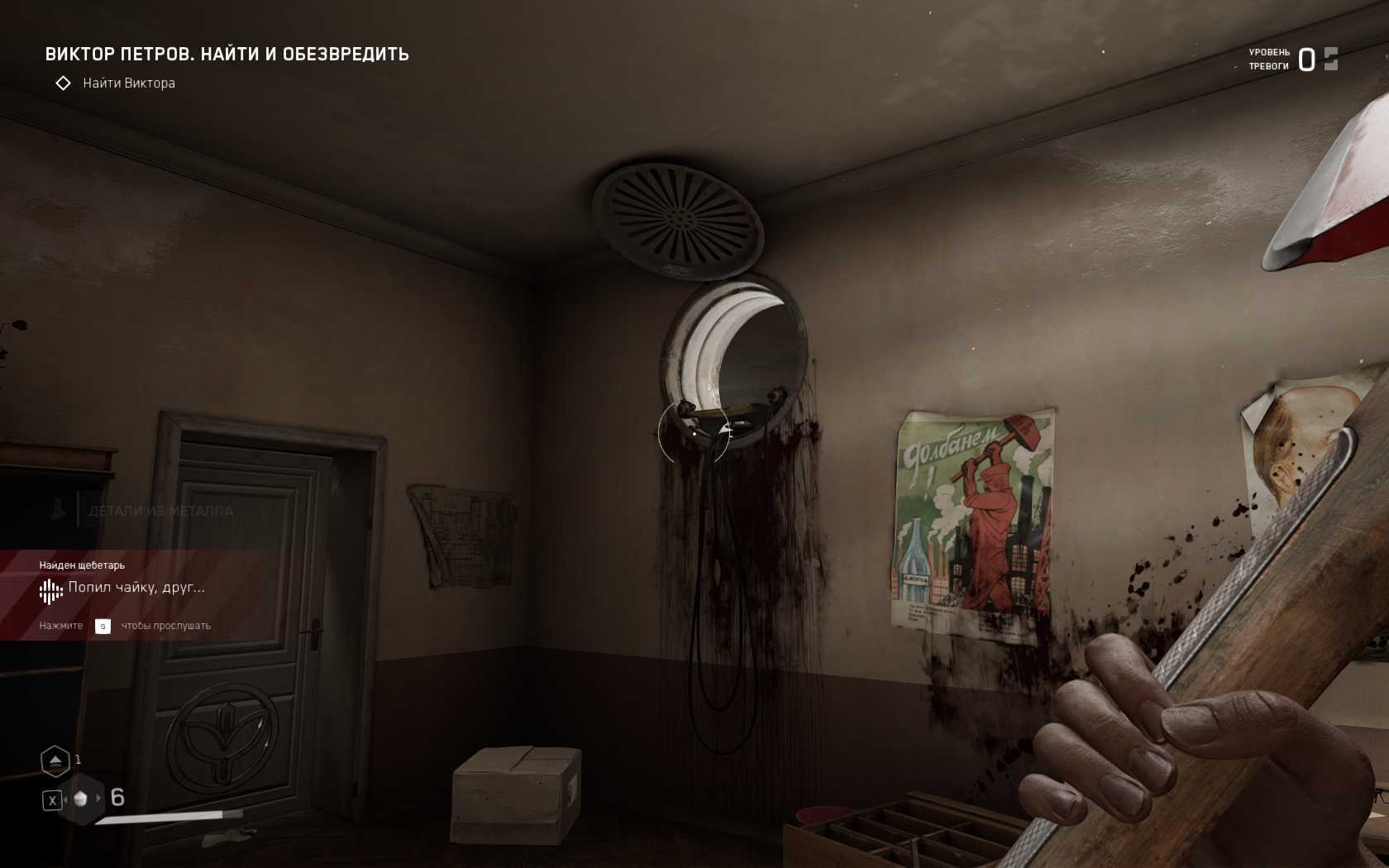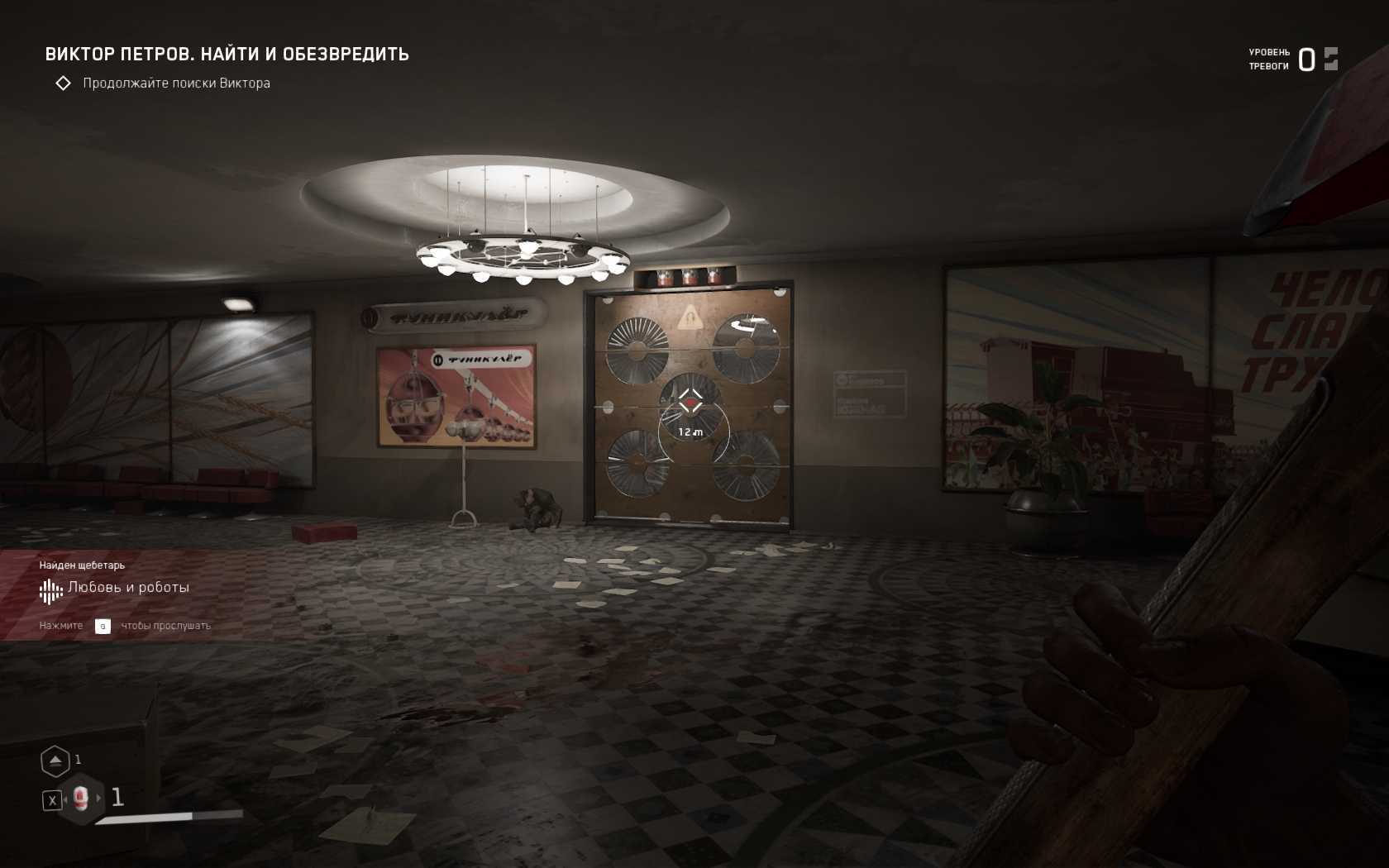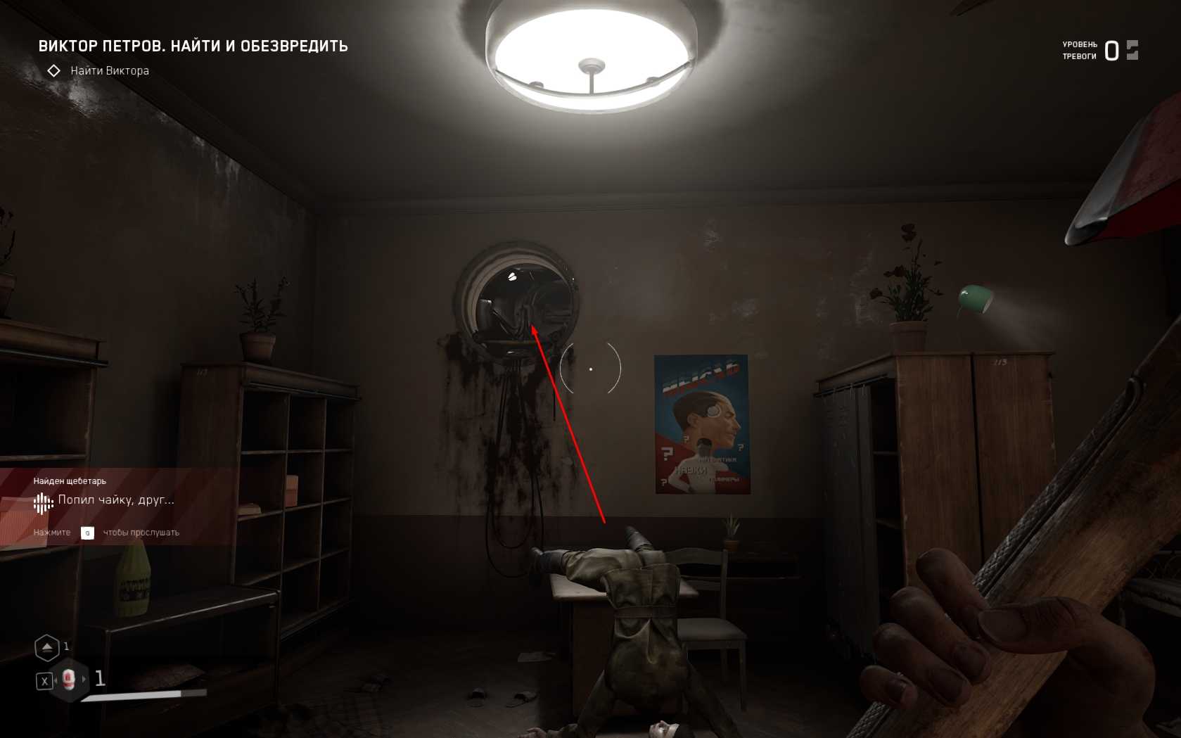 Убейте его и пролезьте через окно в помещение. Обыщите шкафчики, соберите ресурсы и на столе слева заберите «Щебетарь №2». По желанию можете почитать сообщения на компьютере «Груша».