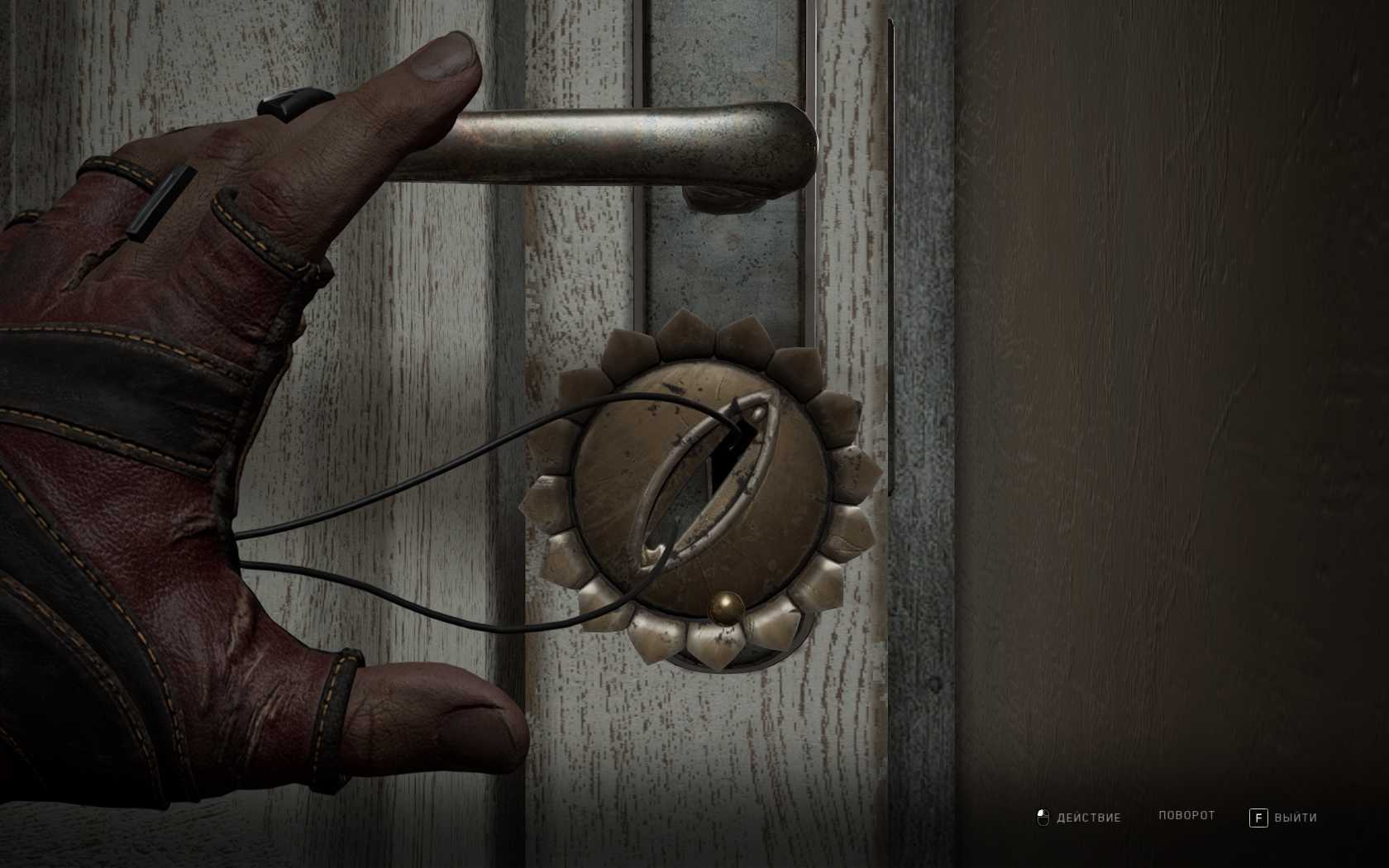 Далее переходим в вид от камеры и наводим ее на вход. Разблокируем его путем нажатия на клавишу взаимодействия.