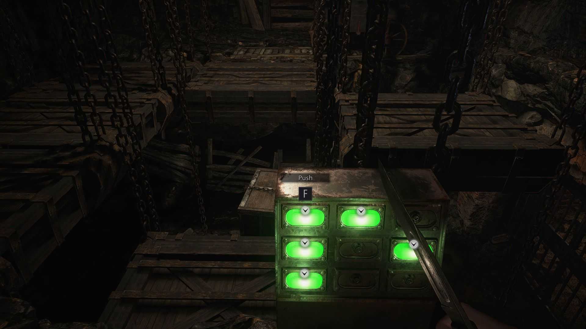 Чтобы начать загадку, пройдите на платформу справа от запертых ворот, чтобы Итан поднялся. Три платформы по эту сторону комнаты служат большими ступенями, ведущими на следующий уровень. В углу рядом с деревянным забором есть самодельная бомба. Обернитесь, и вы увидите консоль с зелеными и белыми огнями. Вот как решить загадку платформы: