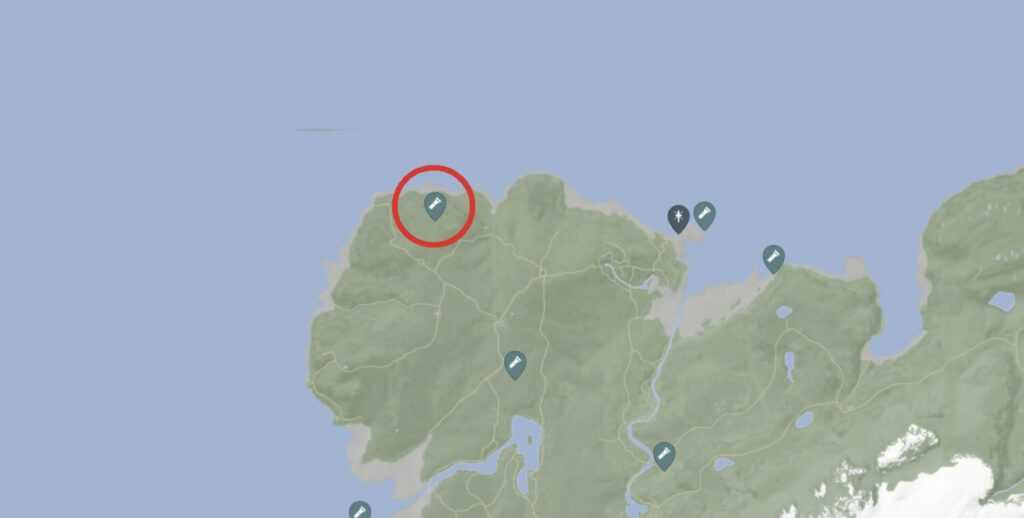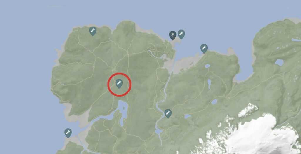 Второе крепление находится в той же части карты, но вам нужно идти к середине. К югу от первой локации, где был находился дробовик, можно будет найти бункер с едой.