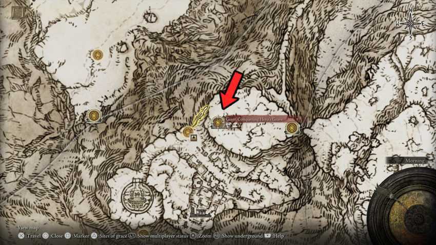 Это босс подземелья «Могила героя-покорителя гигантов». Вход, отмеченный выше, находится на высокой скале возле лифта. Чтобы добраться туда, вам нужно будет обойти всю вершину горы по часовой стрелке, пока вы не сможете прыгнуть с разбега с Торрентом, чтобы добраться до изолированной скалы.