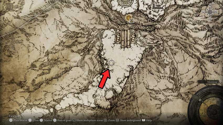 Находится он рядом с Пещерой звездного сияния. Телепортируйтесь на правый портал от метки и спускайтесь вниз на планере.