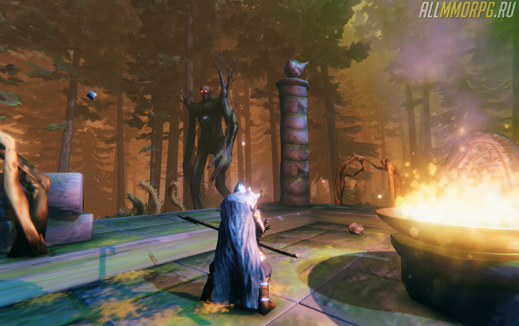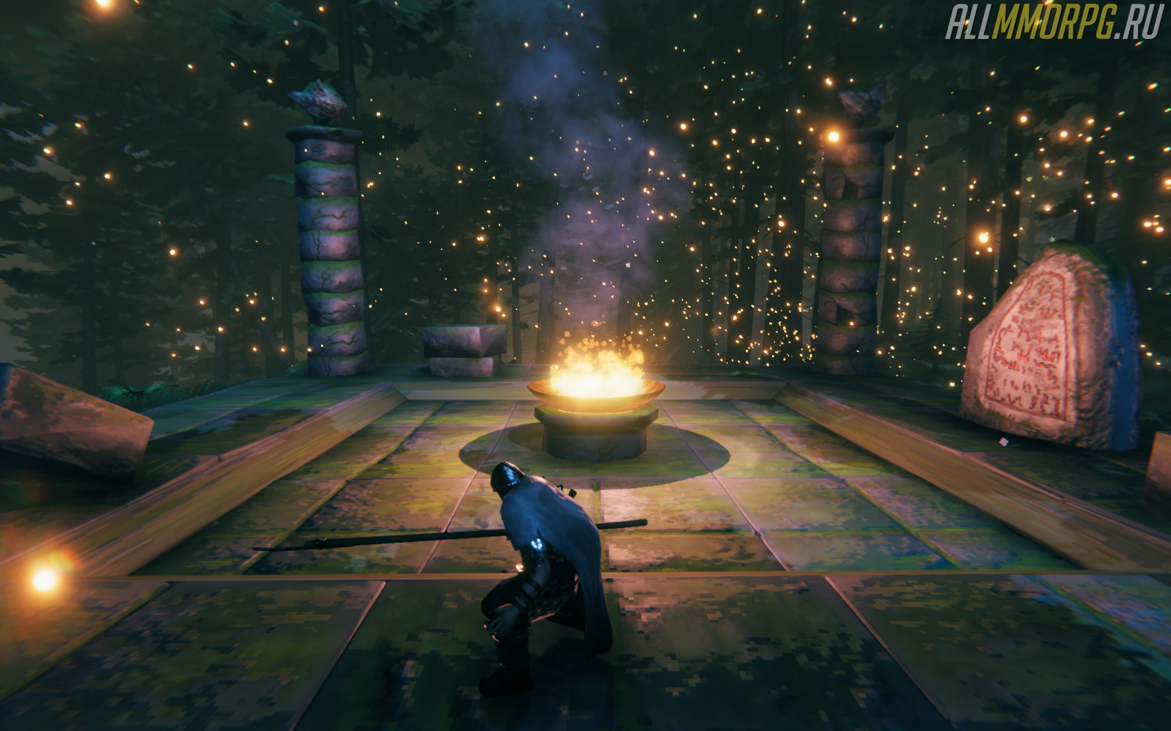 Призыв Древнего также осуществляется на специальном Алтаре, который можно найти в Чёрном лесу. На этот раз он представлен в виде квадратной каменной площадки, по углам которой расставлены столбы, а в середине — огненная чаша. Если вы не можете найти Алтарь, обязательно посетите одну из Погребальных комнат — в них находятся рунные камни, которые направят вас к ближайшему месту призыва.