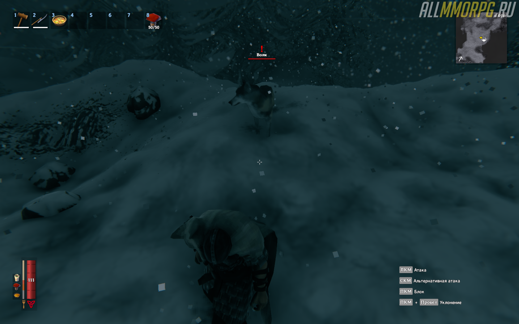 С прирученным волком можно взаимодействовать по нажатию клавиши Е. Подойдите к дружелюбному волку, нажмите Е и он будет следовать за вами. Чтобы отпустить животное, снова нажмите эту же клавишу. Питомцы, которые сопровождают главного героя, будут охранять его и помогать в бою.