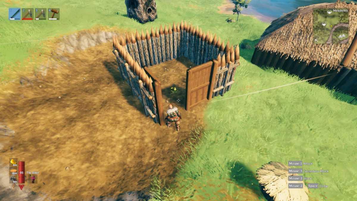 Игрокам нужно будет отправиться в Горы и построить ограждение, используя деревянные стойки, оставив зазор в ограждении шириной в одну стену. Они также могут захотеть установить платформу, лестницу или ступеньки сразу за стеной, которые позволят им бросать еду Волкам, не будучи раненными или иным образом атакованными.