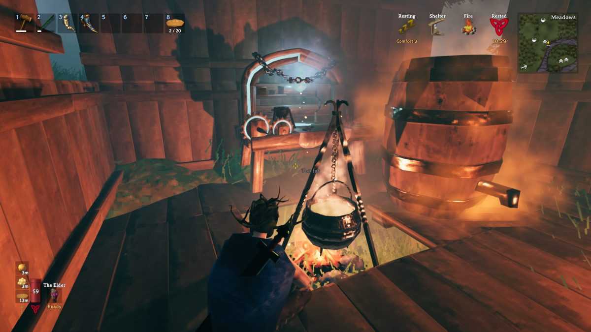 В Valheim довольно большой выбор блюд, но для их изготовления вам понадобится котёл. Подробнее о приготовлении еды и напитков в Valheim мы рассказали в отдельном гайде.