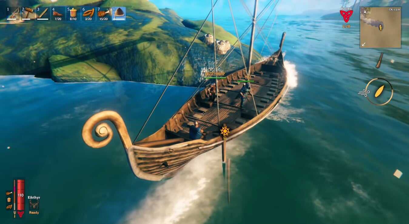 Океан – после постройки плота, ладьи или драккара вы можете отправиться в водный биом. На воде не менее опасно, чем на суше – если лодку не погубит шторм, то это доделает плавучий змей. Но только здесь можно добыть хитин, да и переплыть другой остров в поисках нового очень интересно.