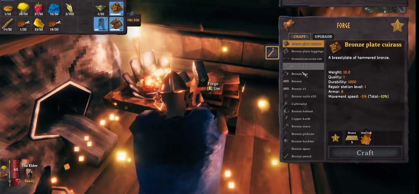 Верстак улучшается специальными пристройками – колода для рубки, дубильный станок, полка для инструментов и т.д. С ними вы сможете создавать новые предметы. Когда вы доберетесь до меди, вам станет доступна кузница. В ней можно обрабатывать металл и ковать экипировку из бронзы. Кузню также можно улучшить. Для этого пристройте рядом наковальню, охладитель, мехи, шлифовальный круг и другие предметы для кузницы. Для крафта слитков руды вам понадобится углевыжигательная печь и плавильня. Самая мощная из доступных печек – доменная. В ней можно переплавить черный металл – самый редкий на данный момент.