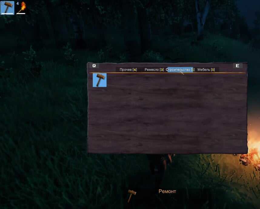 В начале игры скрафтите топор и молоток – это важные инструменты на раннем этапе. Нужные для крафта предметы вы найдете прямо в инвентаре, по нажатию клавиши Tab