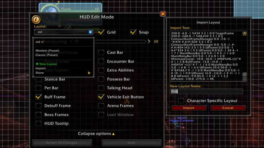 Как сохранить и импортировать новые макеты HUD в World of Warcraft