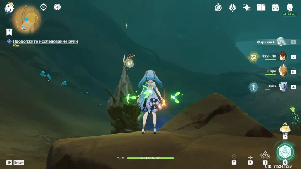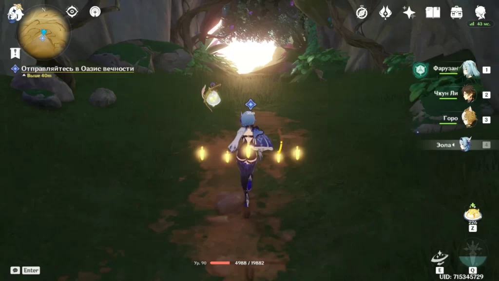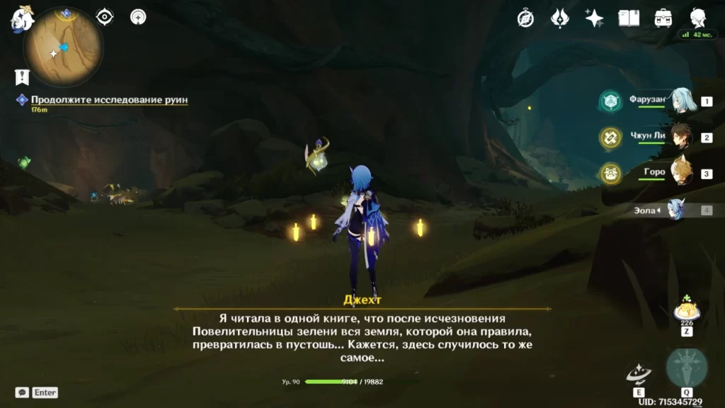 Во сне Васары после сбора первого янтаря найдите портал на том же уровне и сыграйте мелодию. Пройдя через портал, зайдите в комнату справа, возьмите Дендрогранумы и активируйте три висящих Дендро объекта, чтобы снять пузырь. Возьмите янтарь, затем прыгните обратно к порталу и пройдите в открытую дверь рядом с ним. Поверните направо и сыграйте песню еще одному порталу. После прохождения по призрачному мосту просто ударьте ветки, чтобы они рассыпались, и подберите третий янтарь.