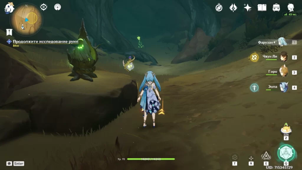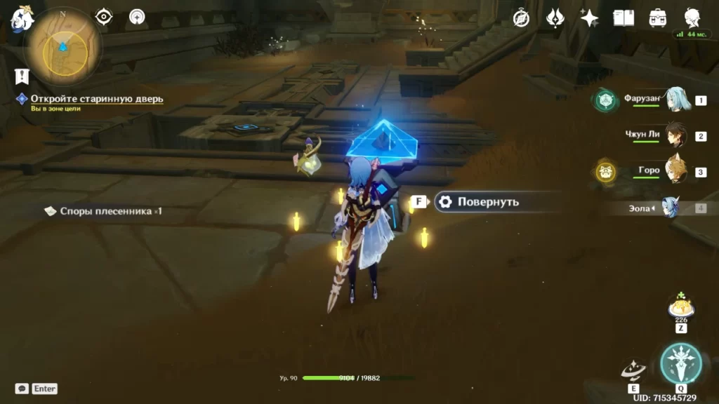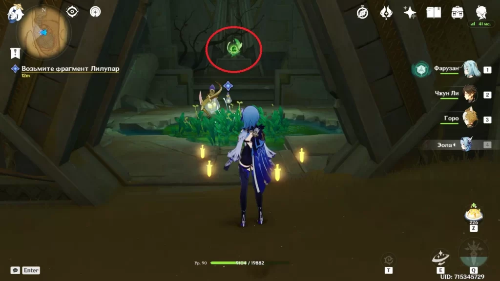 Немного отвлечемся и разблокируем сундук, который охраняет электро скорпион. Сначала конечно убиваем его. А далее нужно активировать 4 дендро колонны разбросанных по пещере. Не обязательно доставать дендро персонажа, рядом стоит дендрогранум, его можно использовать для активации колонн.