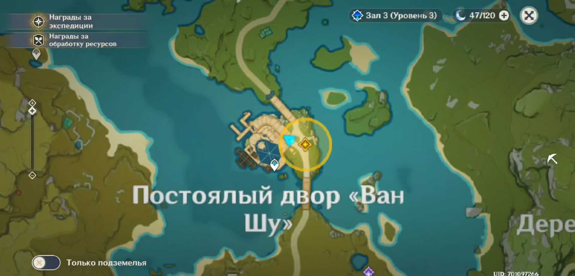 Получив квест по осмотру печати Укротителя Демонов в Постоялом дворе «Ван Шу» (гавань Ли Юэ), убедитесь, что вы находитесь в указанной на скриншоте области.