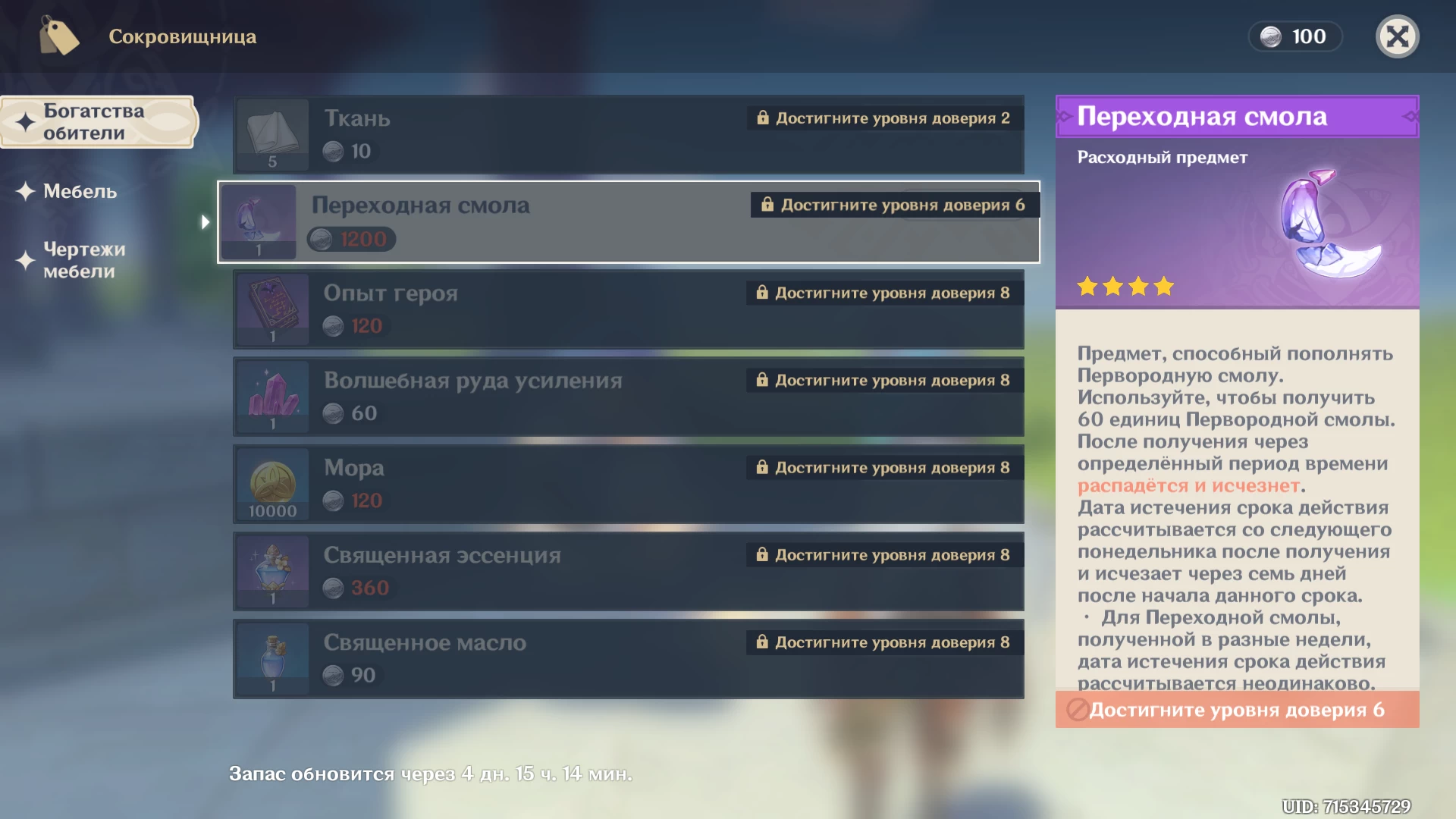 Награда: 120 Камней Истока (в сумме) + мора и опыт + мебель для версии 1.5!